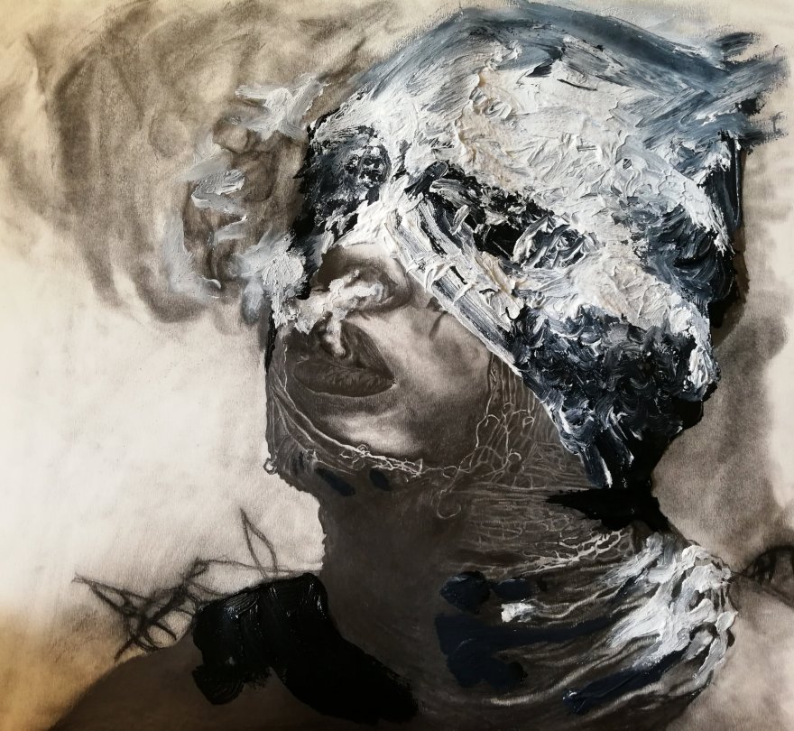 mixed media covered face, 2020 42 x 59.4 cm tonal pencil, charcoal, acrylic paint and pen on paper Related Tagged acrylic, art, charcoal, drawing, mixed-media, painting, pen, pencil